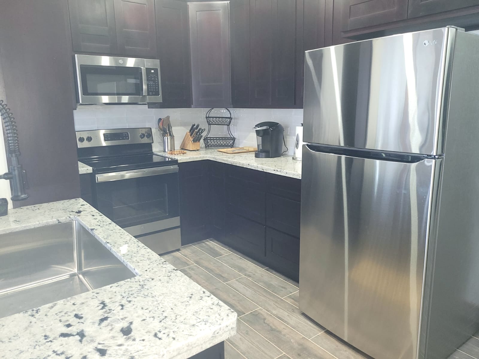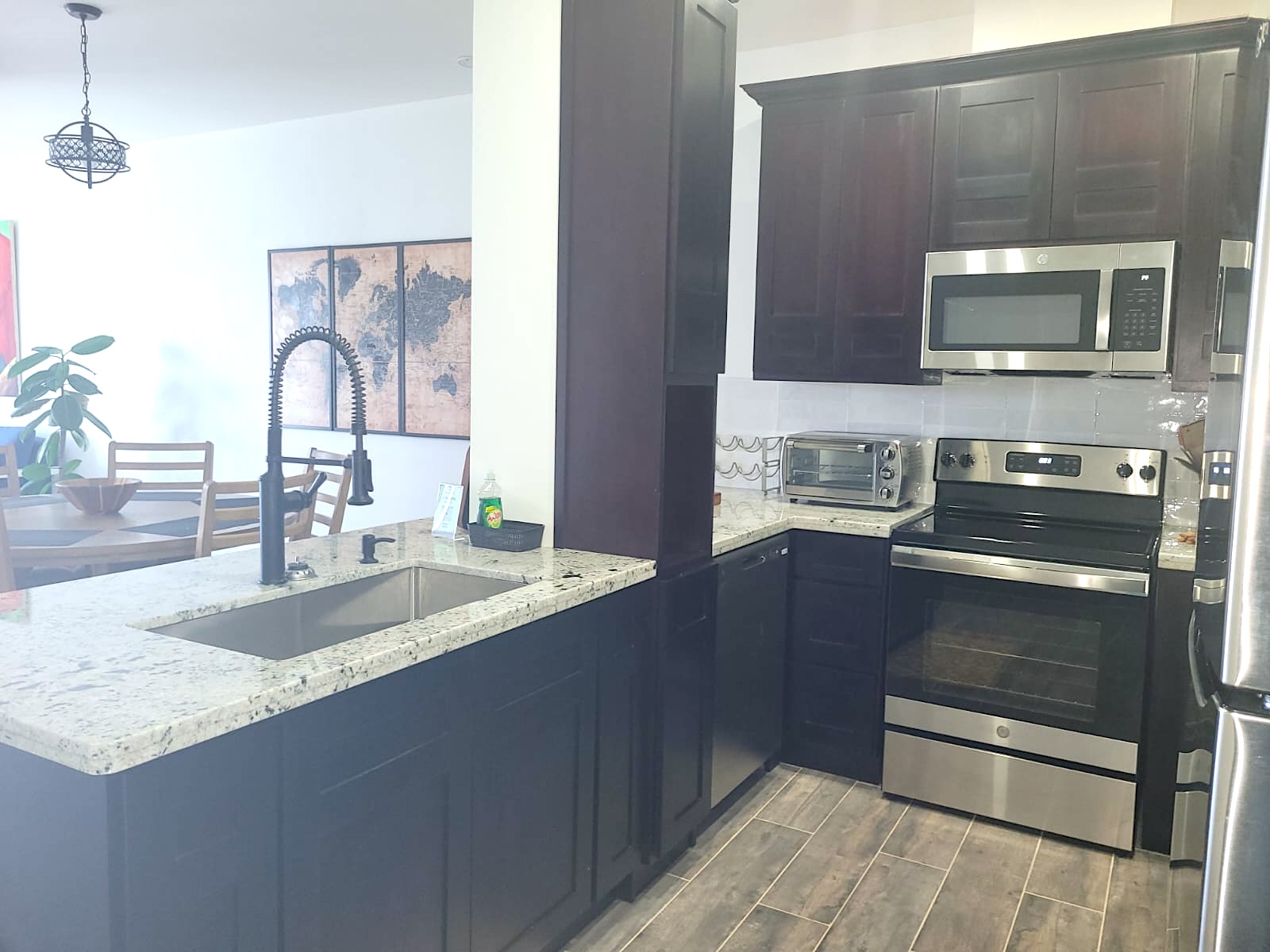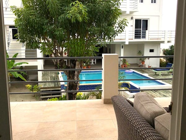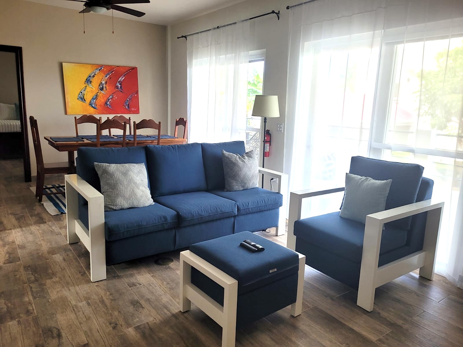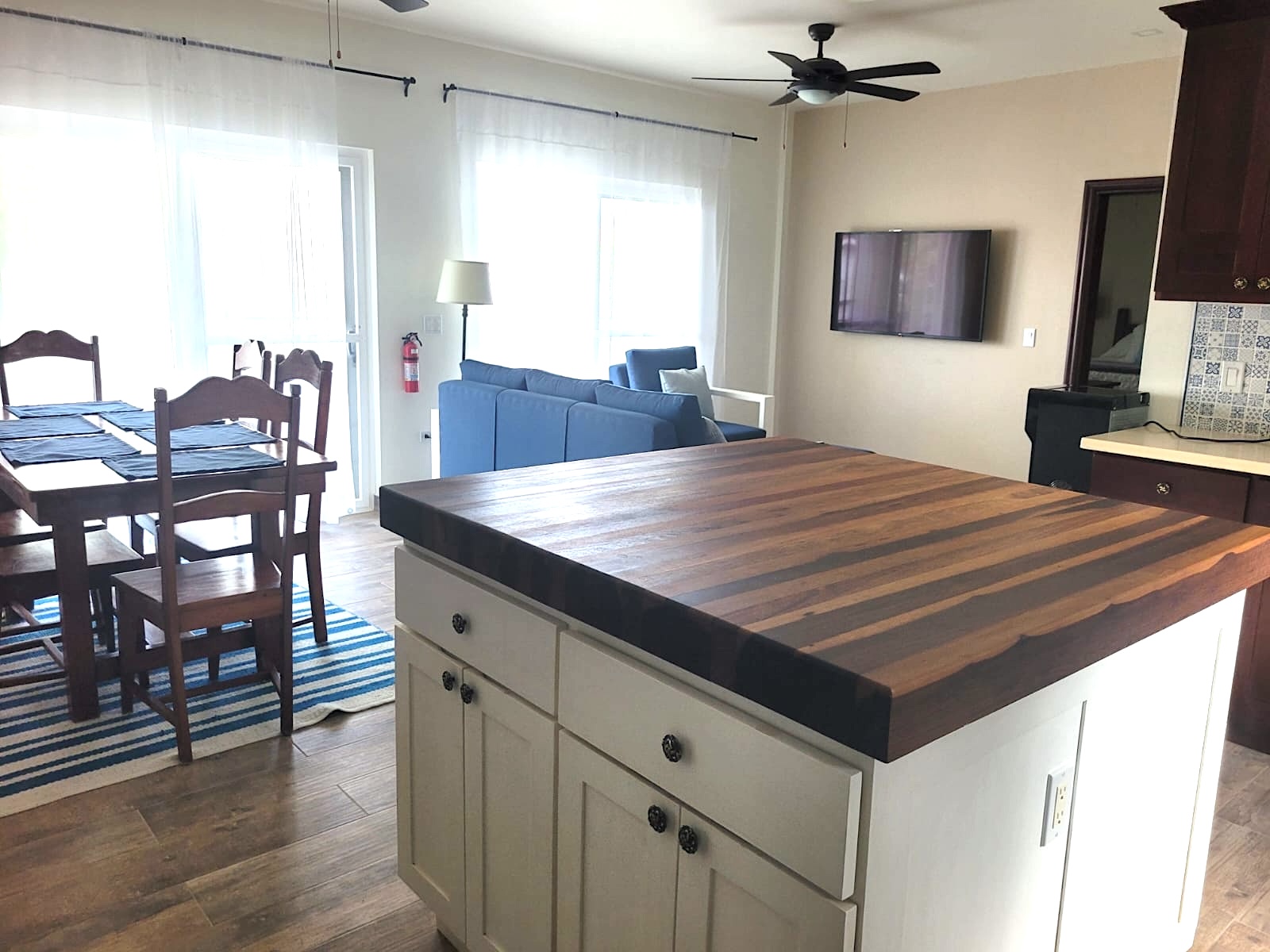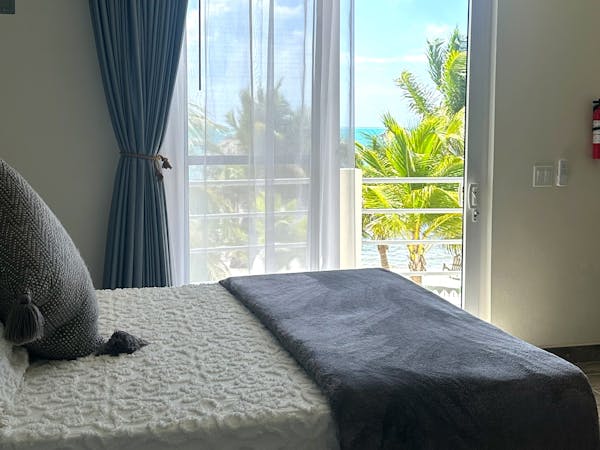 Unwind before and after a day of adventure and relaxation in one of the luxury condos. These ocean view units are situated on the front of the property overlooking the private beach, private dock, and beautiful Caribbean sea. Luxurious with spacious kitchen, living, and dining areas. Fully equipped kitchen with state-of-the-art appliances and a breakfast bar. Each condo is built with luxury and comfort in mind, consisting of three bedrooms with two King beds and one Queen bed—with the ability to sleep up to seven.