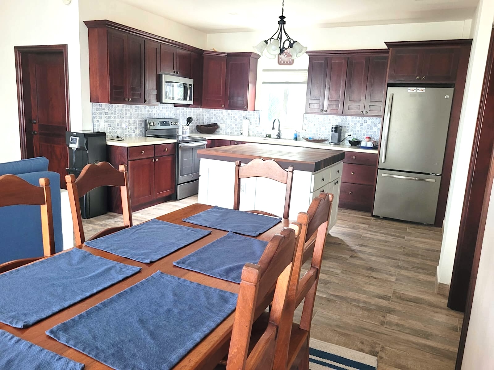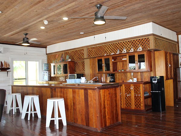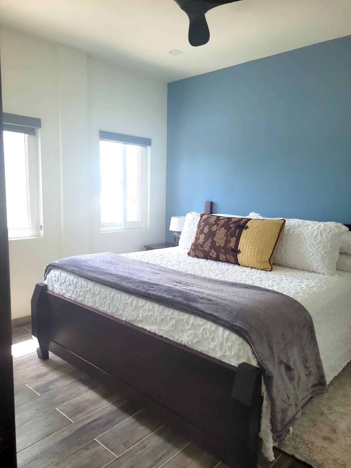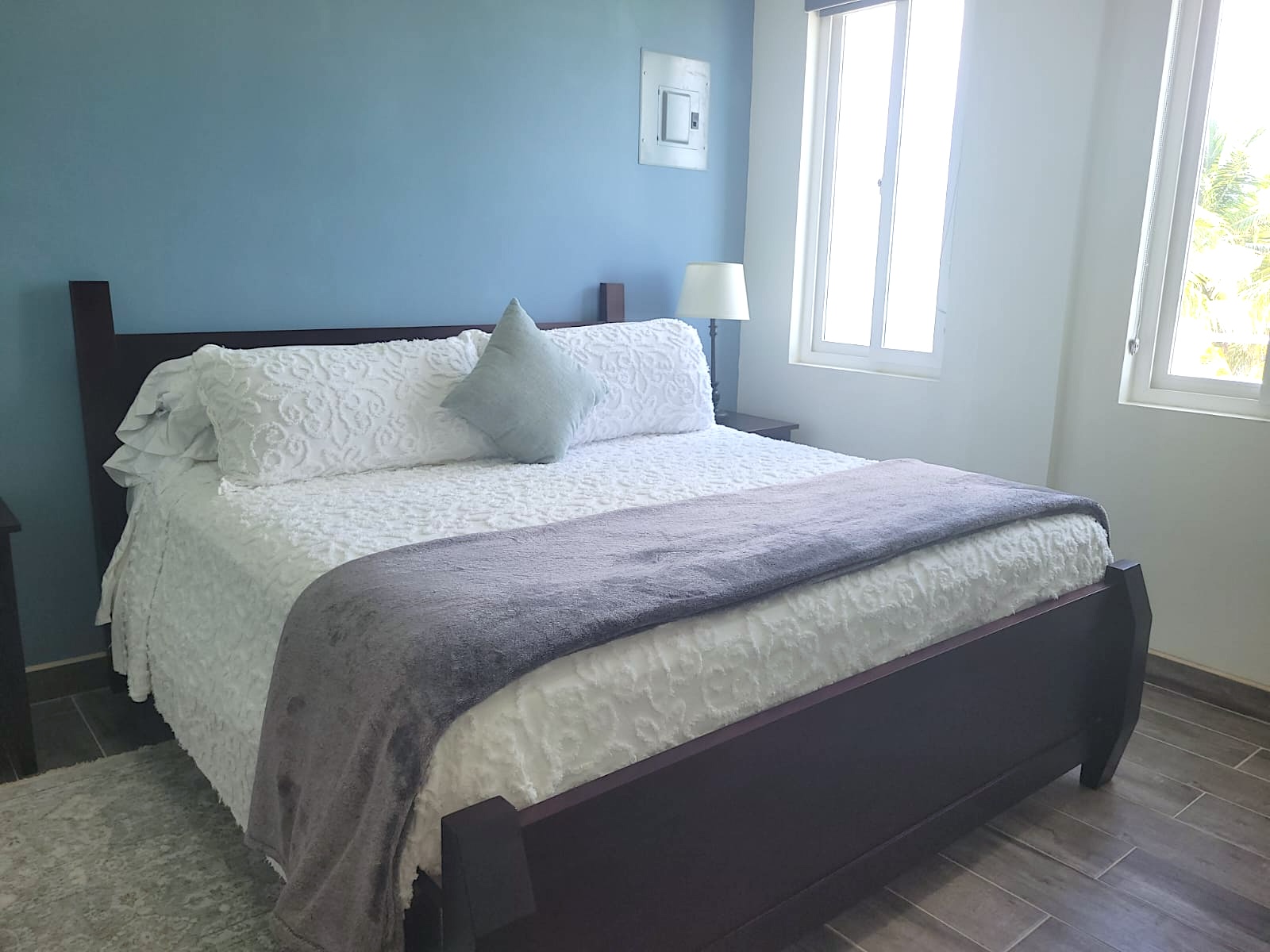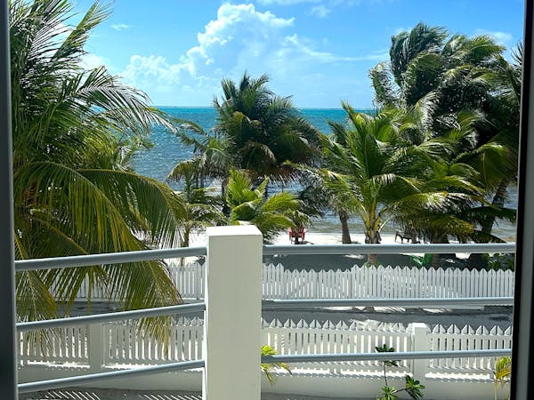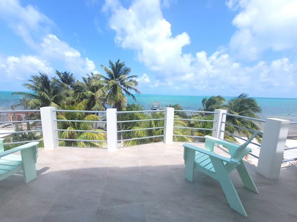 The three bed two bath Beach House is situated on the front of the property overlooking the beautiful Caribbean Sea, private beach, and private dock. Relax in luxury in this beautiful, spacious beachfront house. Wrap around porch and spacious living room make it the perfect place to start relax any time during your stay. Fully equipped kitchen with state-of-the-art appliances and a huge island. One King bed, one Queen bed, two Twin beds—with the ability to sleep up to seven.