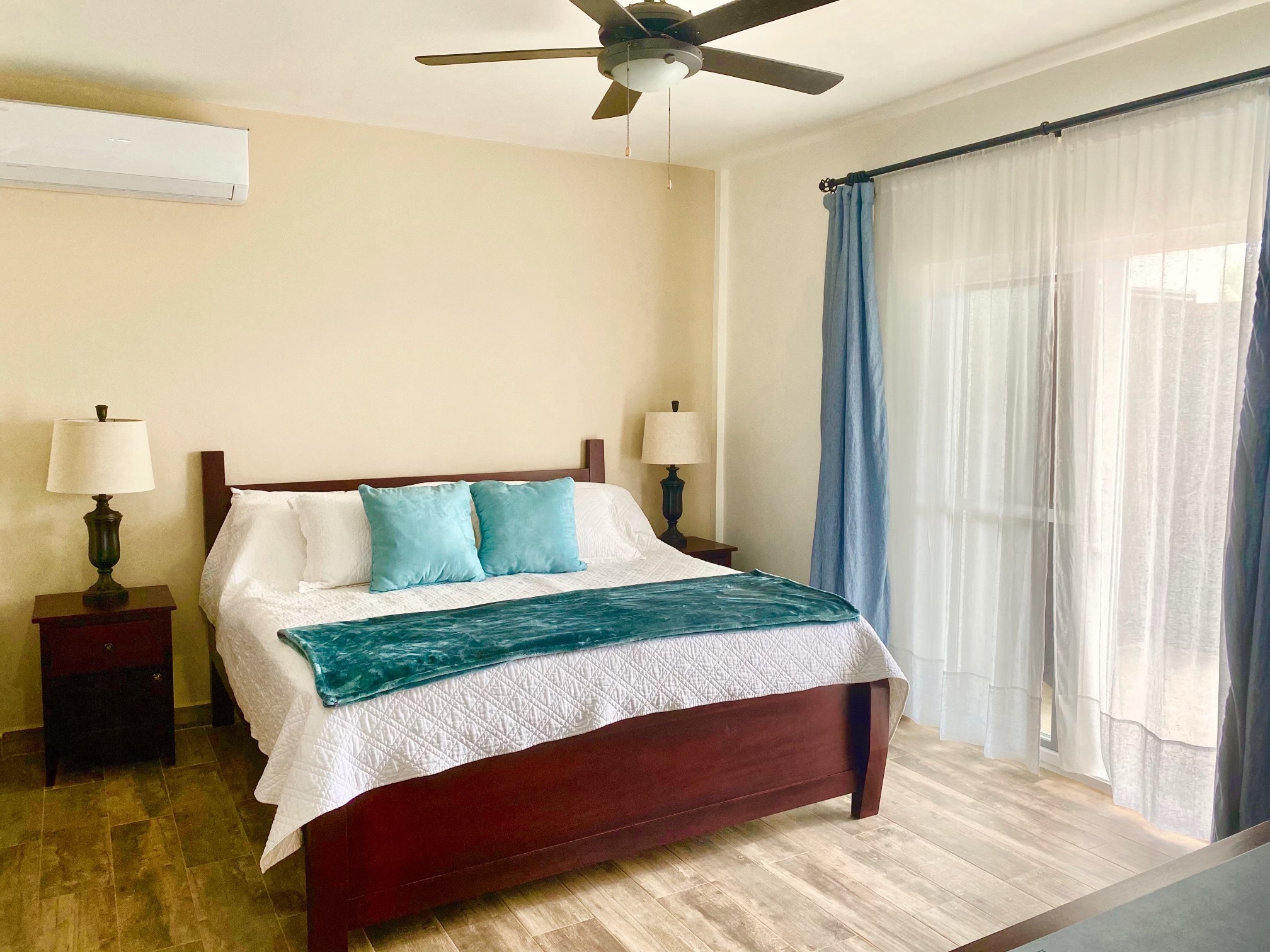 Luxurious suite with spacious kitchen, living, and dining area. Fully equipped kitchen with state-of-the-art General Electric appliances and butcher block island. Connected to Garden Terrace room with private, covered, outdoor seating space. One King size bed, with the ability to sleep up to three.