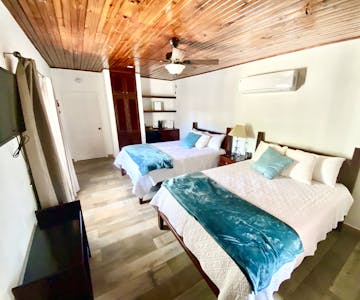 Charming, ground-level, double queen room that sleeps up to four. Fine linens and state-of-the-art amenities make it the perfect place to unwind after a long day on the reef, a day of adventures, or a day of relaxation.
